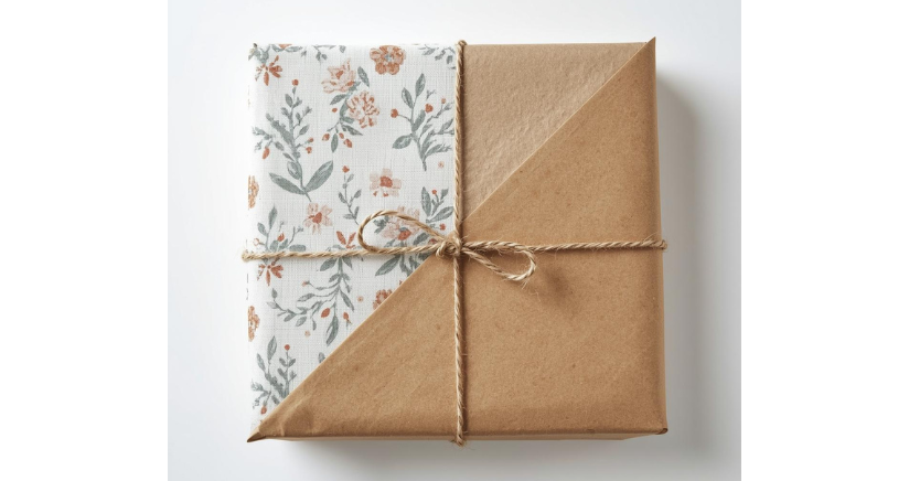 - Reusable gift wrap made from fabric or recycled kraft paper